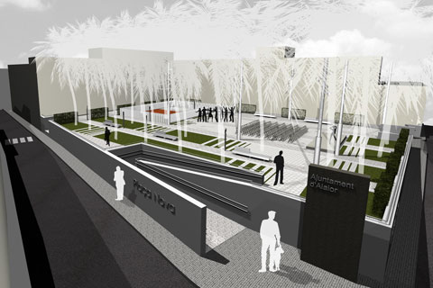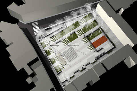 La misma geometría de la plaza, su consistencia material, nos cuentan la historia de esta parte de la ciudad. La propuesta para su remodelación nace de la constatación que el esquema funcional de los recorridos funciona y puede funcionar con el nuevo layout. Las intervenciones se limitan a redibujar los elementos de acceso con el doble objetivo de maximizar la accesibilidad de la plaza (eliminación de las barreras arquitectónicas) y de dar un diseño mas fluido del espacio.